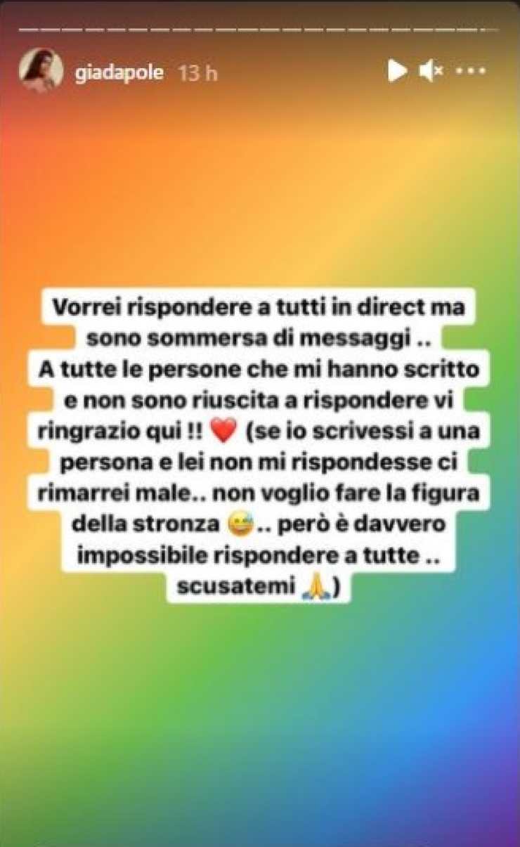 L’ex protagonista di Temptation Island, in seguito, ha pubblicato anche alcune stories per ringraziare tutti i suoi followers per la vicinanza. In molte hanno voluto condividere la loro esperienza con l’influencer.