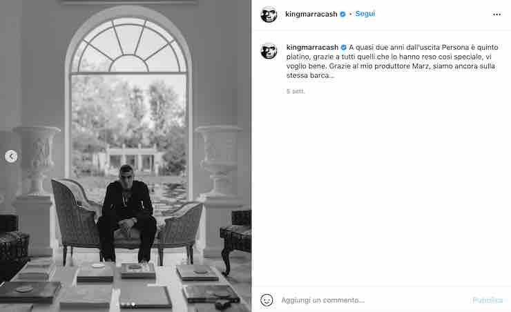“A quasi due anni dall’uscita ‘Persona’ è quinto platino“, ha infatti scritto lui come didascalia del post, “grazie a tutti quelli che lo hanno reso così speciale, vi voglio bene. Grazie al mio produttore Marz, siamo ancora sulla stessa barca“. Insomma, pare che il cantante si sia ripreso alla grande e che abbia adesso tutta la forza per poter continuare il suo percorso musicale.