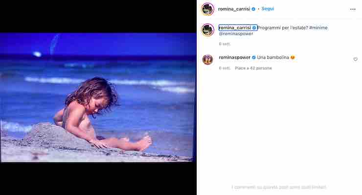Il suo post ha ovviamente ottenuto numerosissimi apprezzamenti da parte dei suoi followers, che non hanno perso l’occasione per commentare e per complimentarsi con lei. “Com’eri tenera immersa nella sabbia“, ha infatti scritto uno di loro. E ancora: “Bellissima ieri e oggi“. E’ poi spuntato il commento della mamma Romina Power, che si è chiaramente emozionata nel vedere questa foto ricordo. “Una bambolina“, ha infatti scritto lei riferendosi alla sua amatissima figlia. Attivissima sui social, la Carrisi pubblica spesso scatti che ritraggono la sua quotidianità e la sua vita lavorativa: il suo profilo Instagram vanta infatti la presenza di ben 108mila followers.
